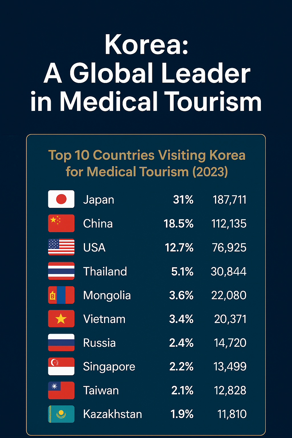 Top 10 Countries Visiting Korea for Medical Tourism (2023):